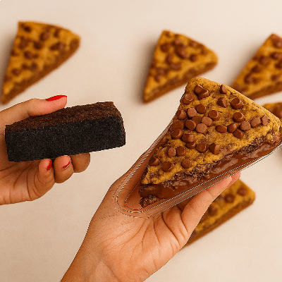 Um carinho em forma de doce! Brownie cremoso com casquinha crocante — o mais amado da casa! Fatia cookie com recheio de Nutella — simplesmente a mais vendida! Perfeito pra presentear quem você ama… ou se amar com gosto
