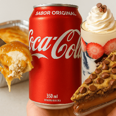 Perfeito pra aquele chamego gostoso com o mozão Combo Chamego a Dois: 2 empadões de frango com requeijão 1 fatia 1 verrine 300ml 2 latinhas de Coca-Cola Quer trocar a fatia ou a verrine? É só deixar o nome da preferida no campo "Observações". Se não avisar, a irresistível torta cookie e b01 vai junto!
