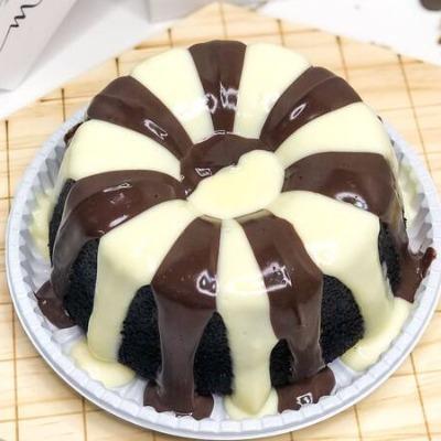 Massa de cacau black, úmida e fofinha, recheio de creme de chocolate e creme belga, perfeito para partilhar momentos. Serve de 10 pessoas.